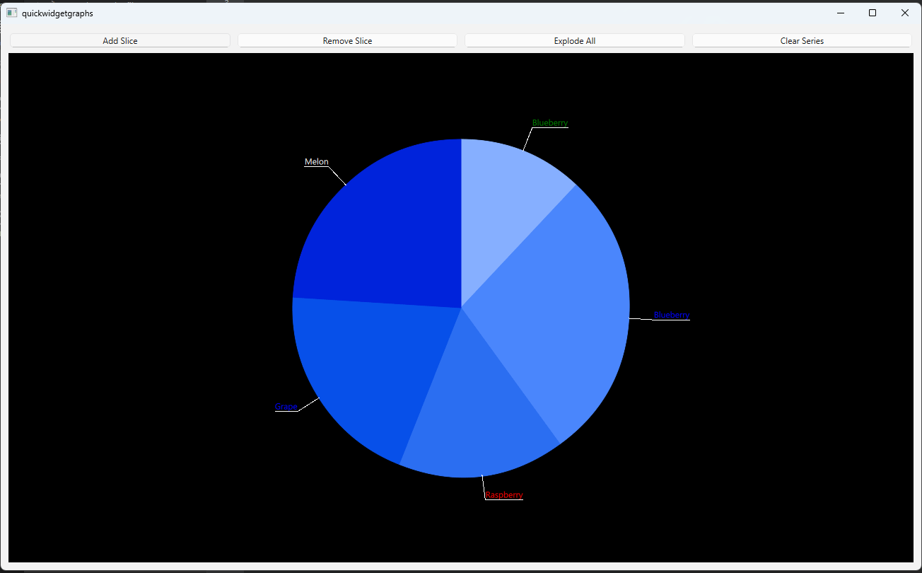 explodeSlicesfunction, loop through all slices and set QPieSlice::setExploded() totrueorfalsedepending on current state. - In the